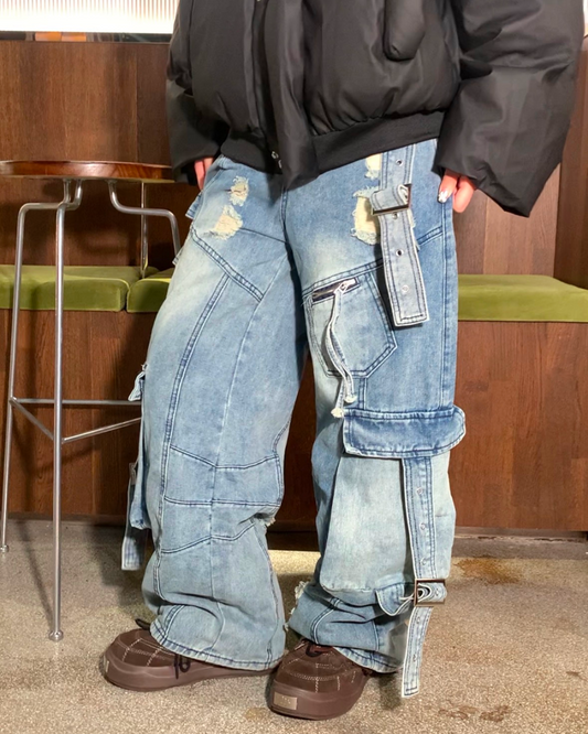 ワイドダメージポケットベルトデニムパンツ B0088