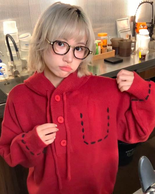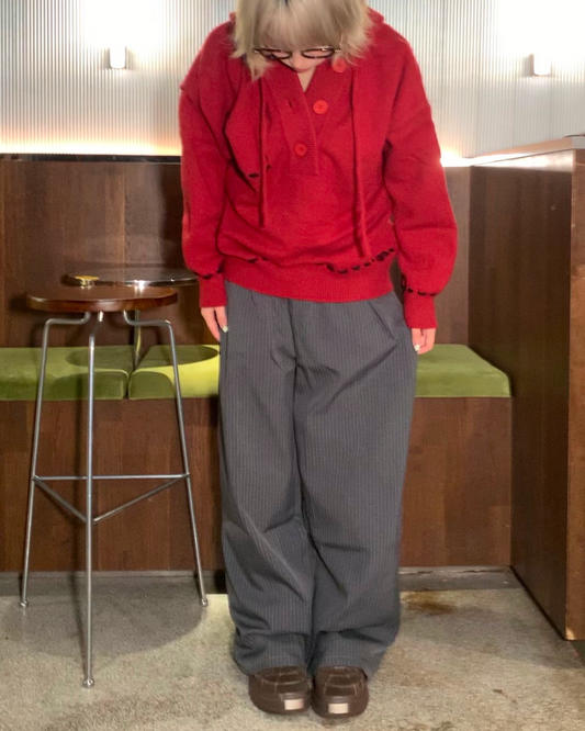 ステッチボタンニットフーディー B0085