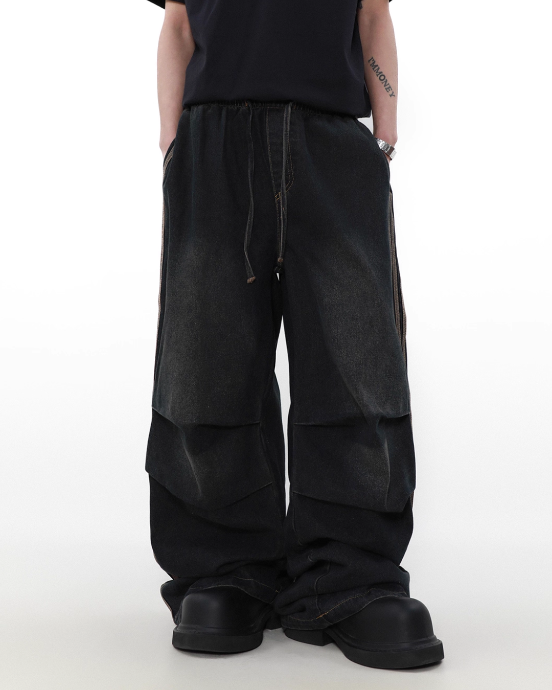 Drawcord side line denim pants B0077
