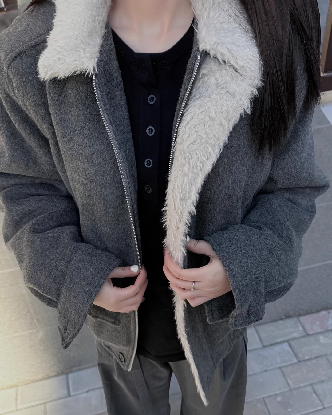 短丈ジップボタンファージャケット B0093